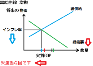 更に増税することで、図のように需要が下がりますので、景気が悪くなりそうですね。