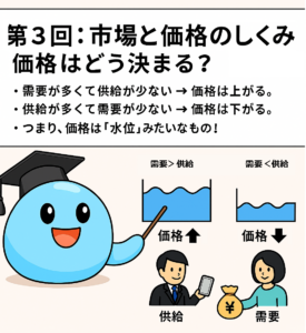 ・市場は「水場」、価格は「水位」、需要と供給は「流れ」!
