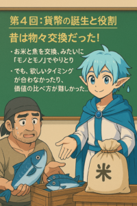 ・お米と魚を交換、みたいに「モノとモノ」でやりとりしてた。